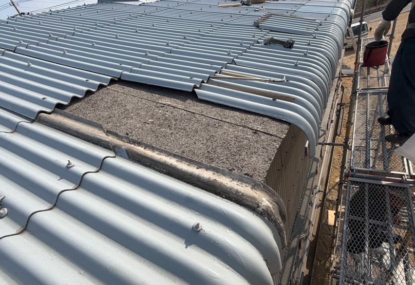 スレートの軒先曲がりは雨どいも外さないと交換できないので手間がかかります。