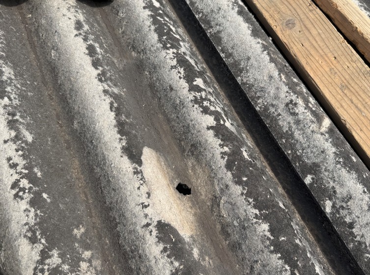 大波に穴が開き雨漏りしてました・・谷側の穴開きは雨漏りに直結しますね